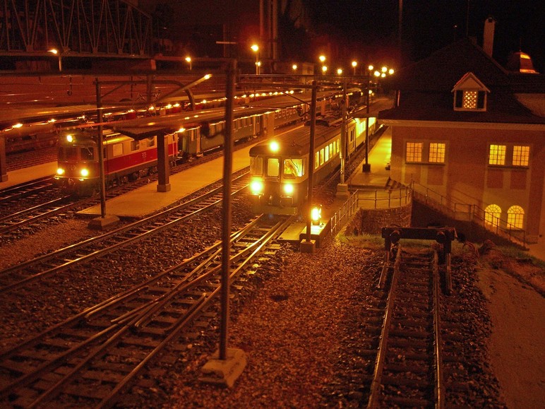 Kandersteg aus den 60er Jahren ist wieder auferstanden. Die Anlage läuft mit echtem Oberleitungsbetrieb.